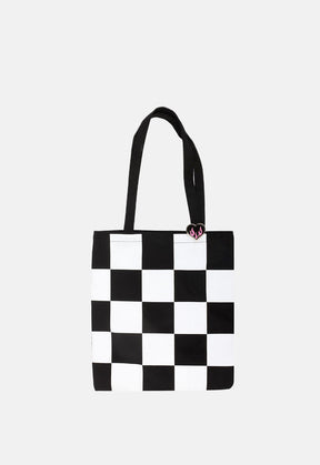 Bring bold energy wherever you go with this checkerboard tote bag with a detachable heart pin badge for some pop-punk flair. A must-have for anyone with a rebellious streak and a love for 00s nostalgia.
