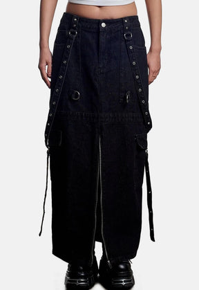 Bondage Denim Midi Skirt