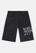 Relaxed fit black denim shorts.